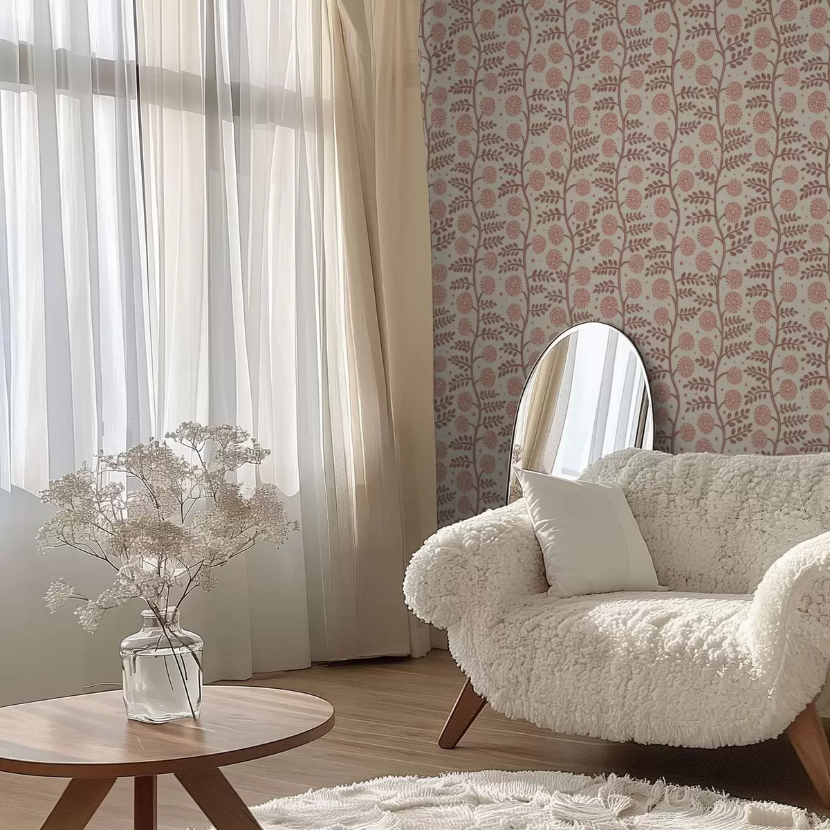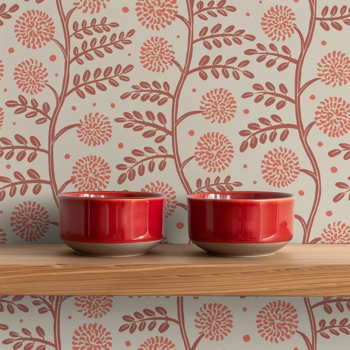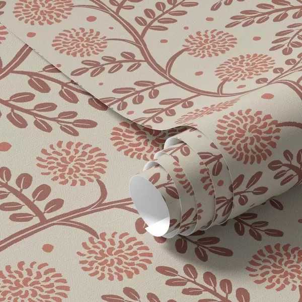 Bildschirmhintergründe Terrakottafarbene Stiele mit korallenroten, flauschigen Blüten auf cremefarbenem Hintergrund Nr. a00997v1