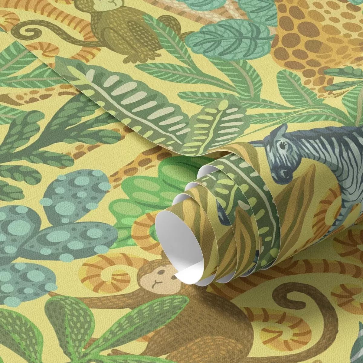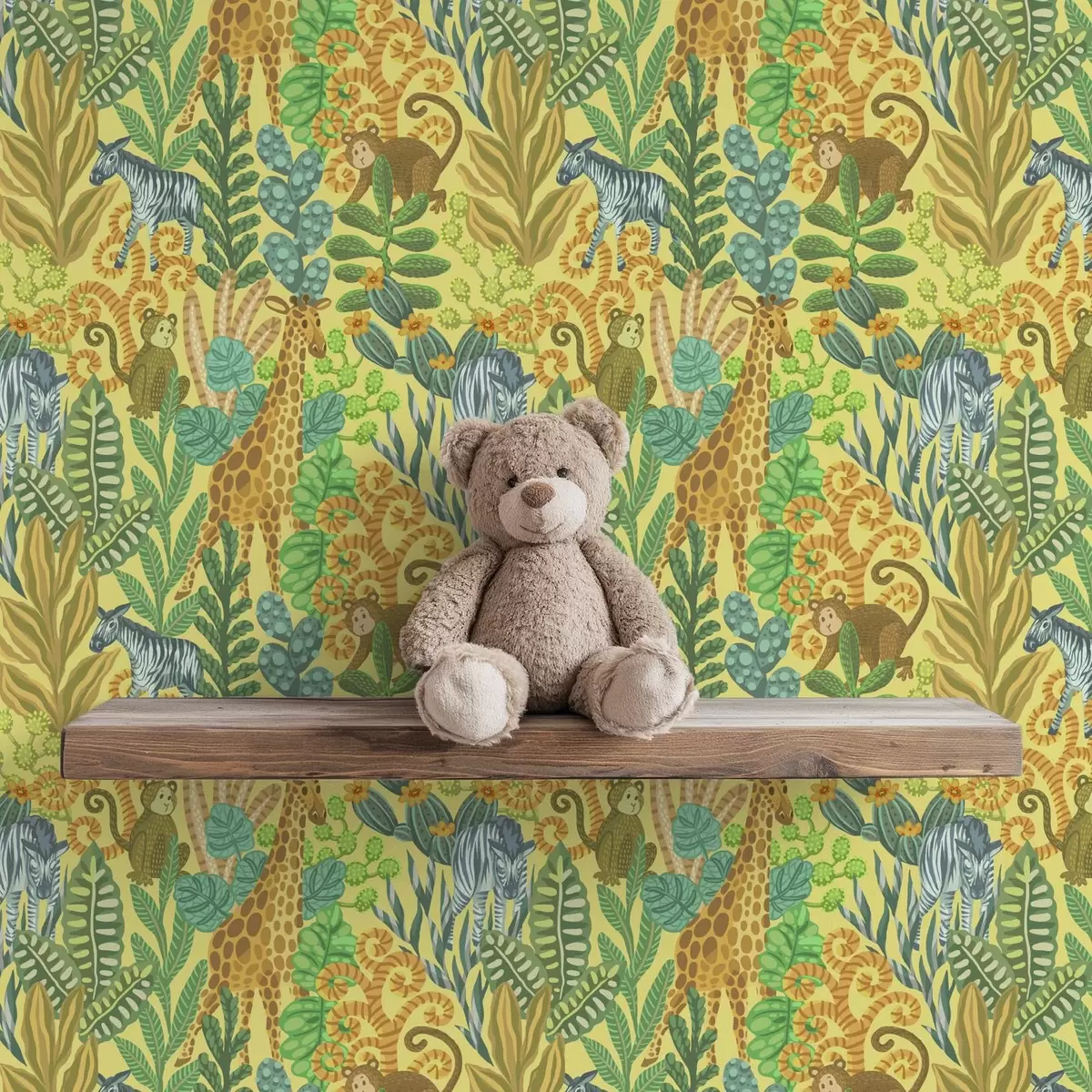 Bildschirmhintergründe Giraffe, Zebra und Affe in einer leuchtend gelben Savanne Nr. a01000v1