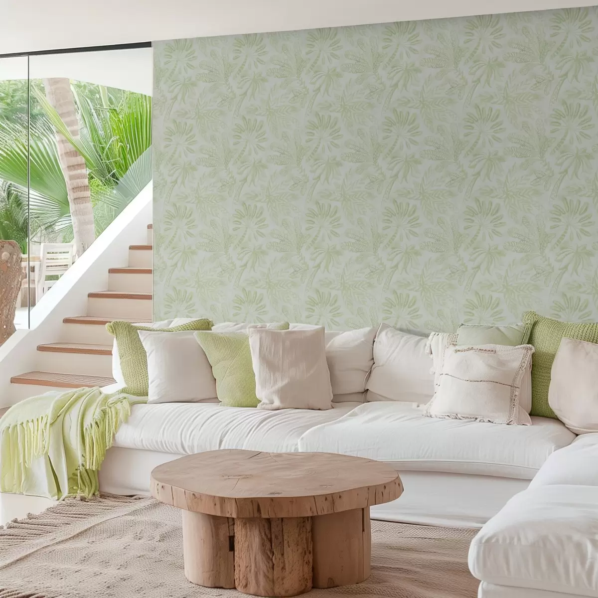 Bildschirmhintergründe Skizzierte tropische Blätter in frischen Hellgrüntönen Nr. a01001v1
