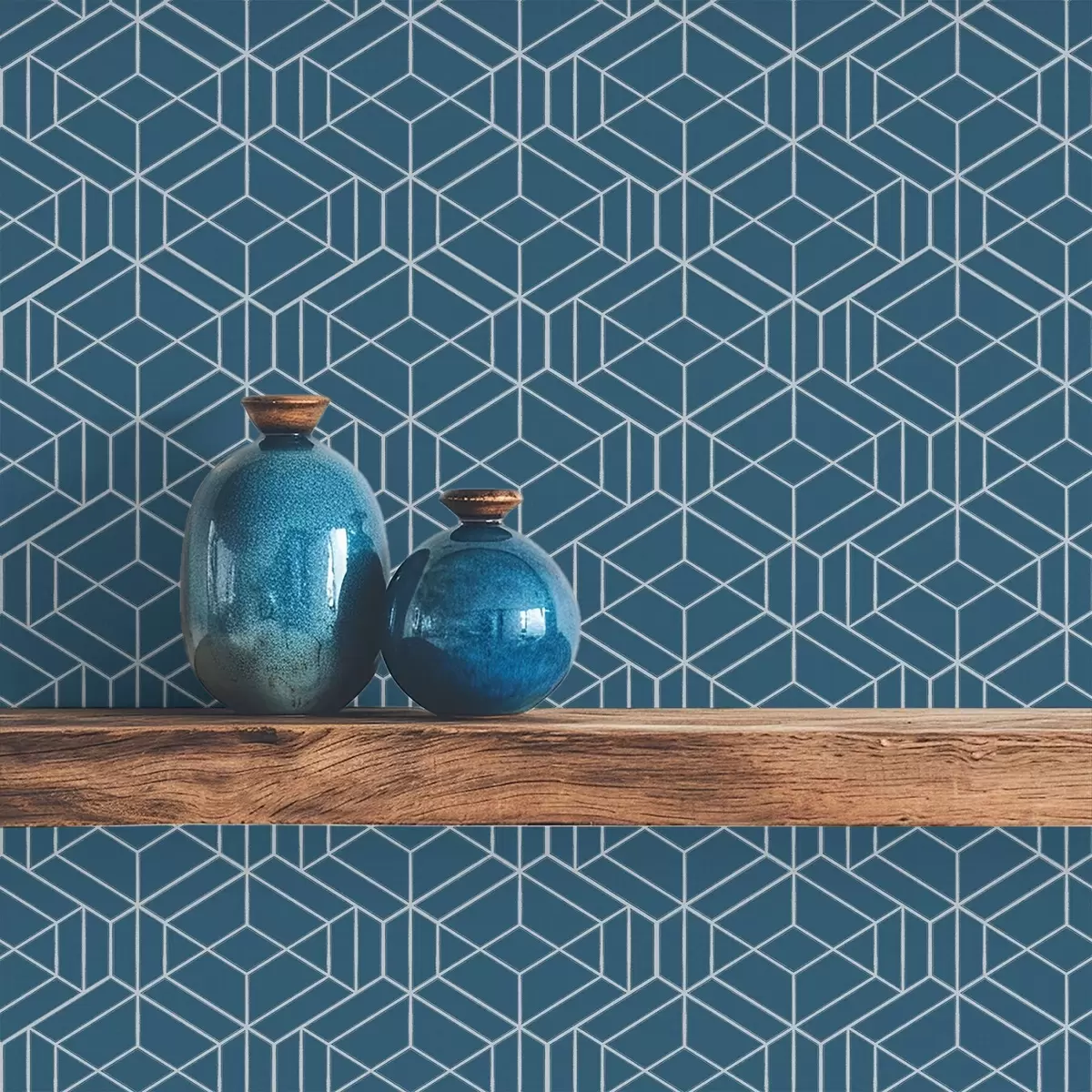 Bildschirmhintergründe Blauer Hintergrund mit weißen linearen Würfeln in einem Raster Nr. a01067v1