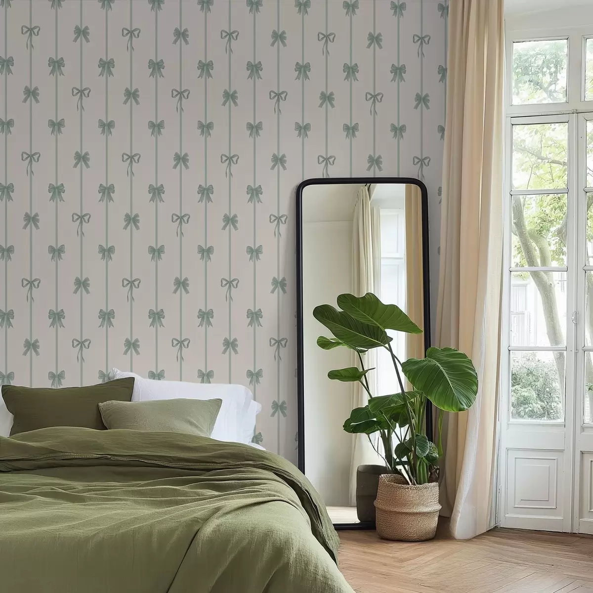 Bildschirmhintergründe Grüne Schleifen mit Bändern auf beigem Hintergrund Nr. a01074v1
