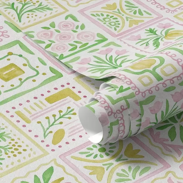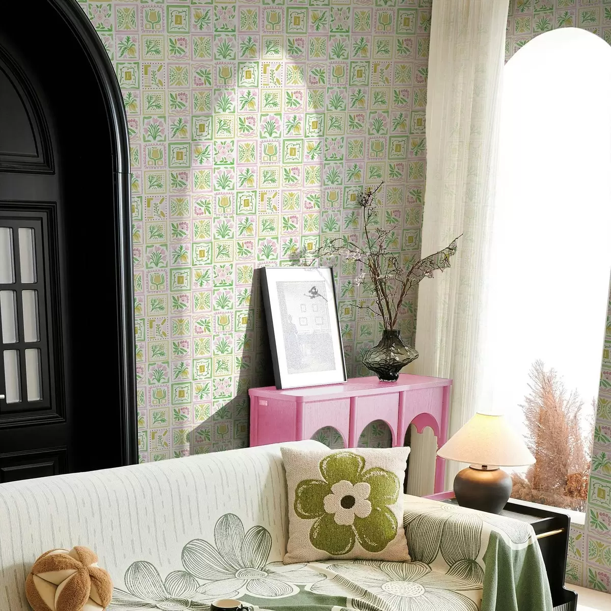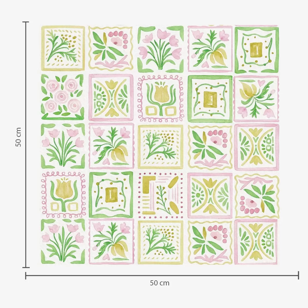 Bildschirmhintergründe Aquarellquadrate mit rosa und grünen Zweigen Nr. a01082