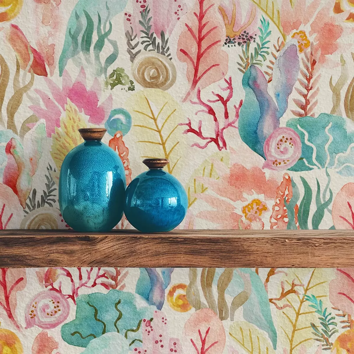 Bildschirmhintergründe Aquarell Unterwassergarten mit Korallen und Seetang Nr. a01083