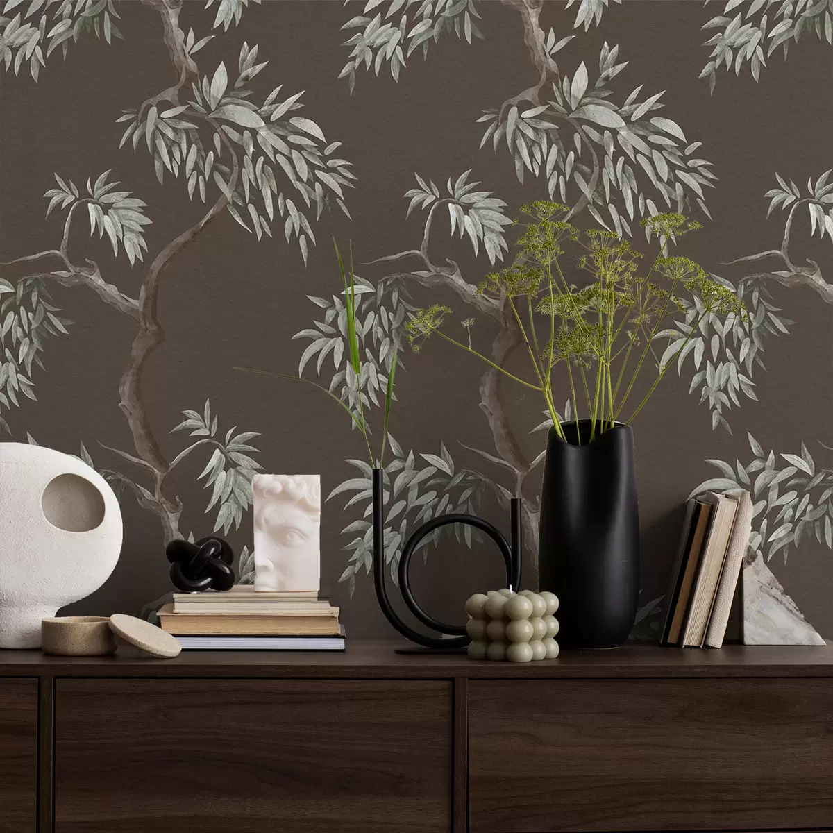 Bildschirmhintergründe Baumzweig mit Blättern auf braunem Hintergrund Nr. a01117v3