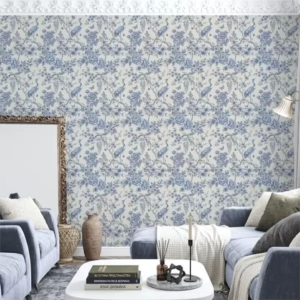 Bildschirmhintergründe Blaues Blumenornament mit Vogel und Zweigen Nr. a01132