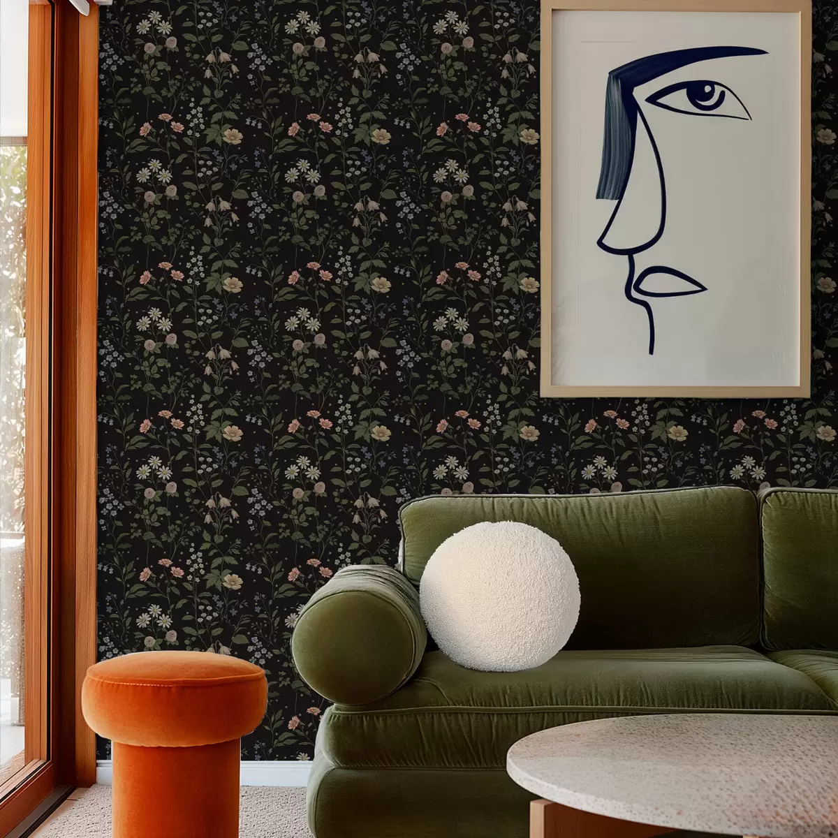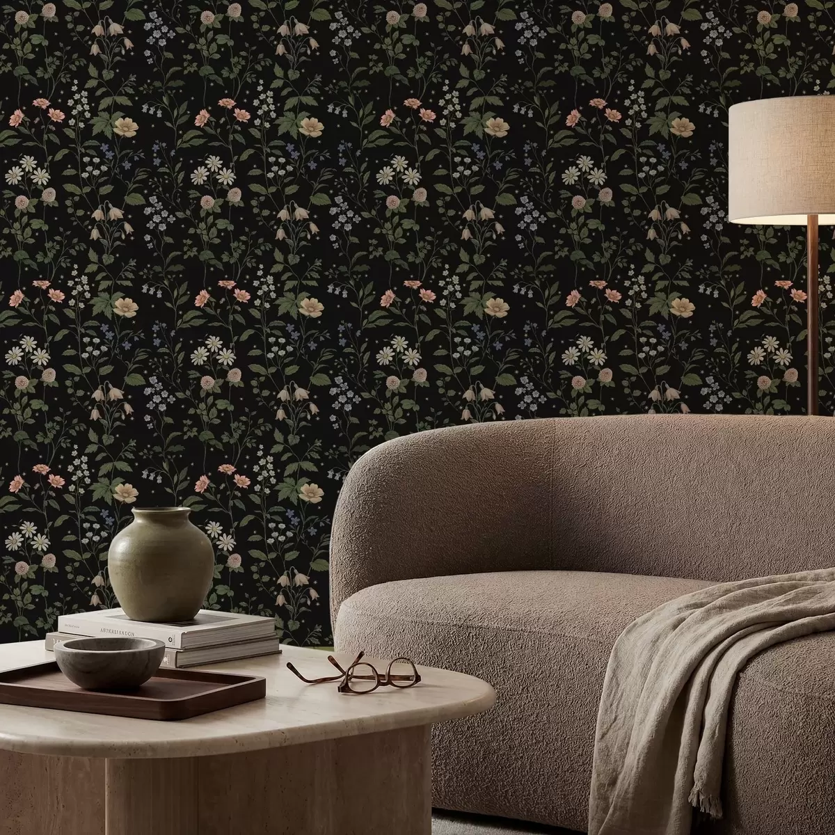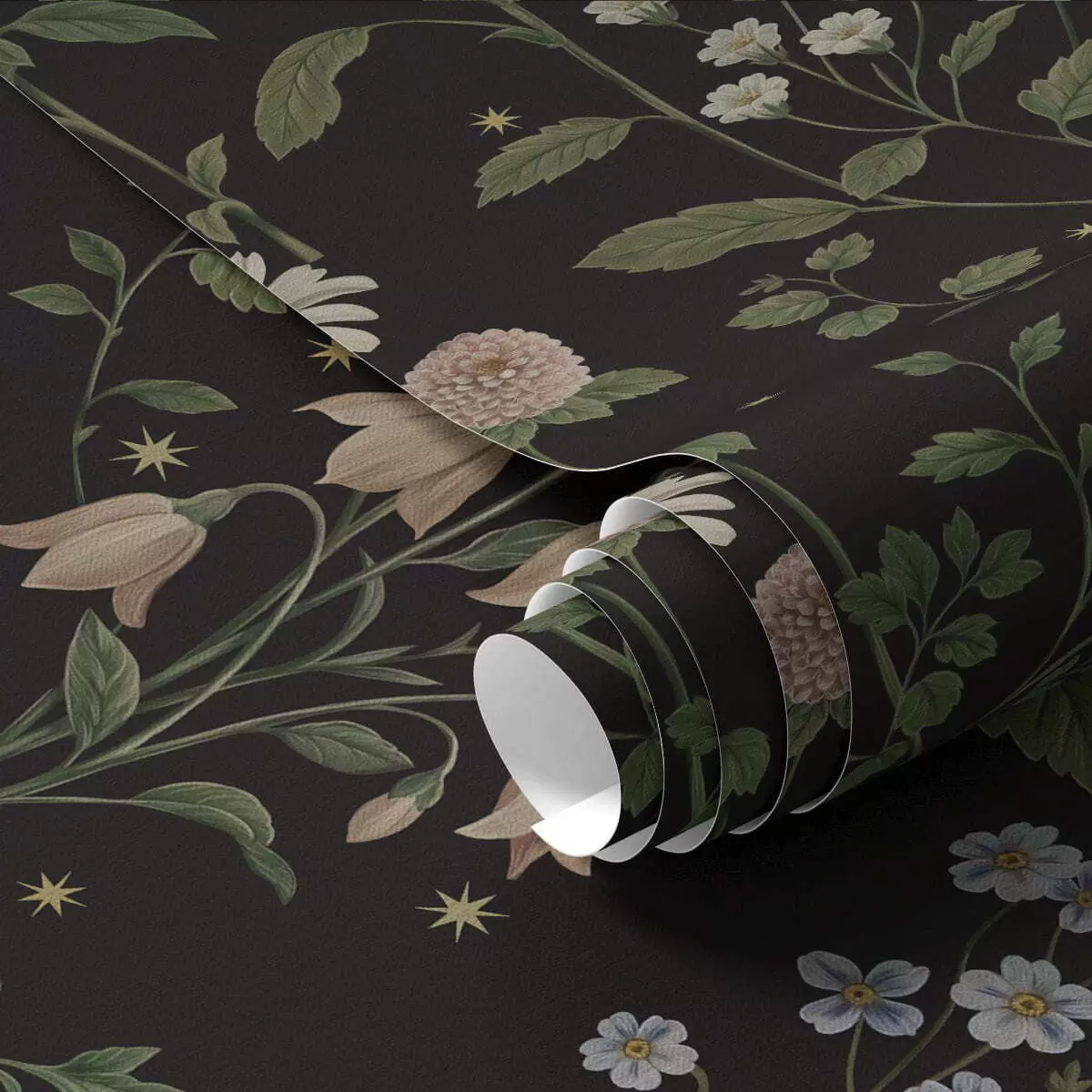 Bildschirmhintergründe Blumenmuster auf schwarzem Hintergrund mit Sternen Nr. a01160